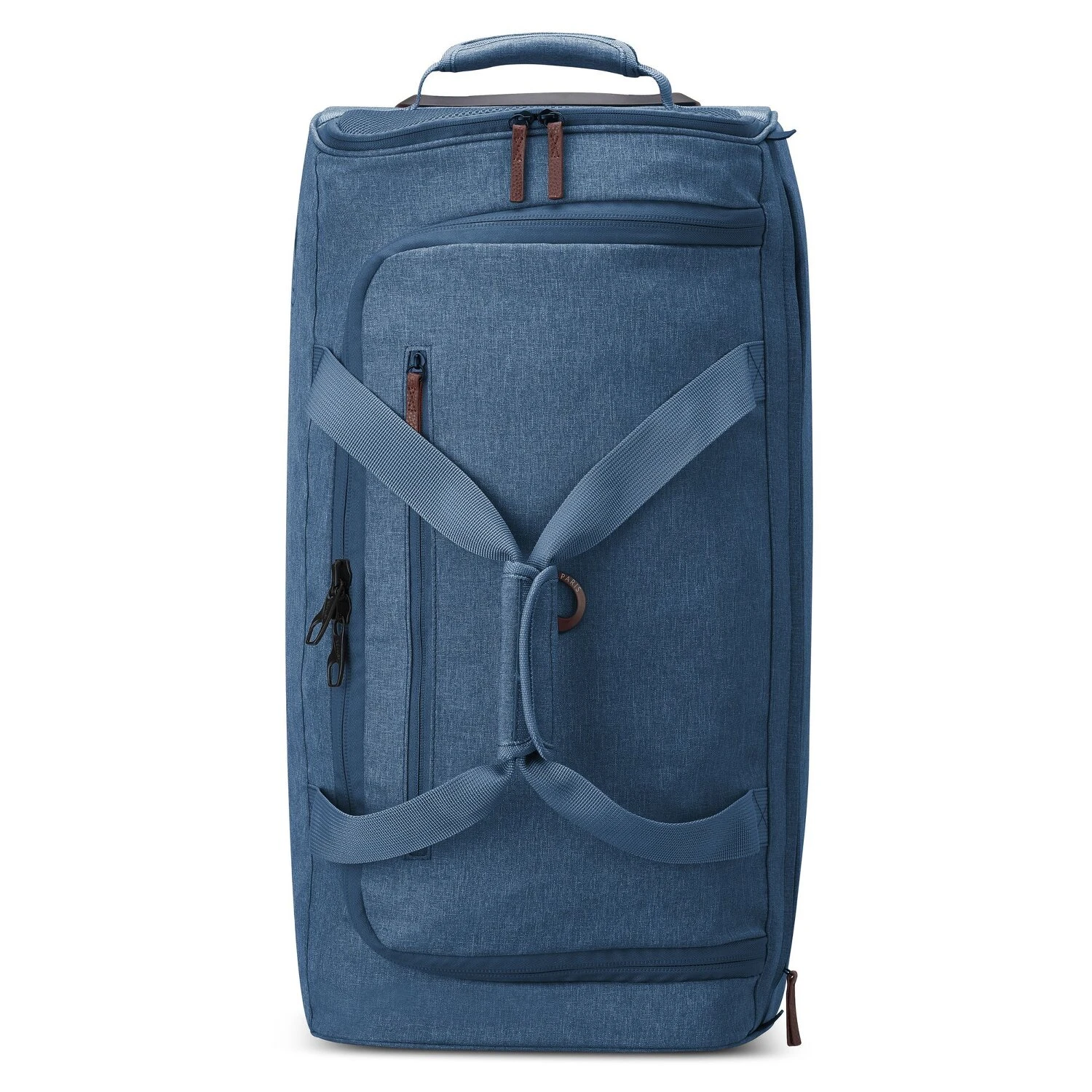 Le sac de voyage trolley pratique de Delsey possède un grand compartiment principal avec sangle et poche zippée, ainsi qu’une poche zippée supplémentaire sur le devant. De plus, le sac de voyage est équipé d’une poignée télescopique verrouillable.