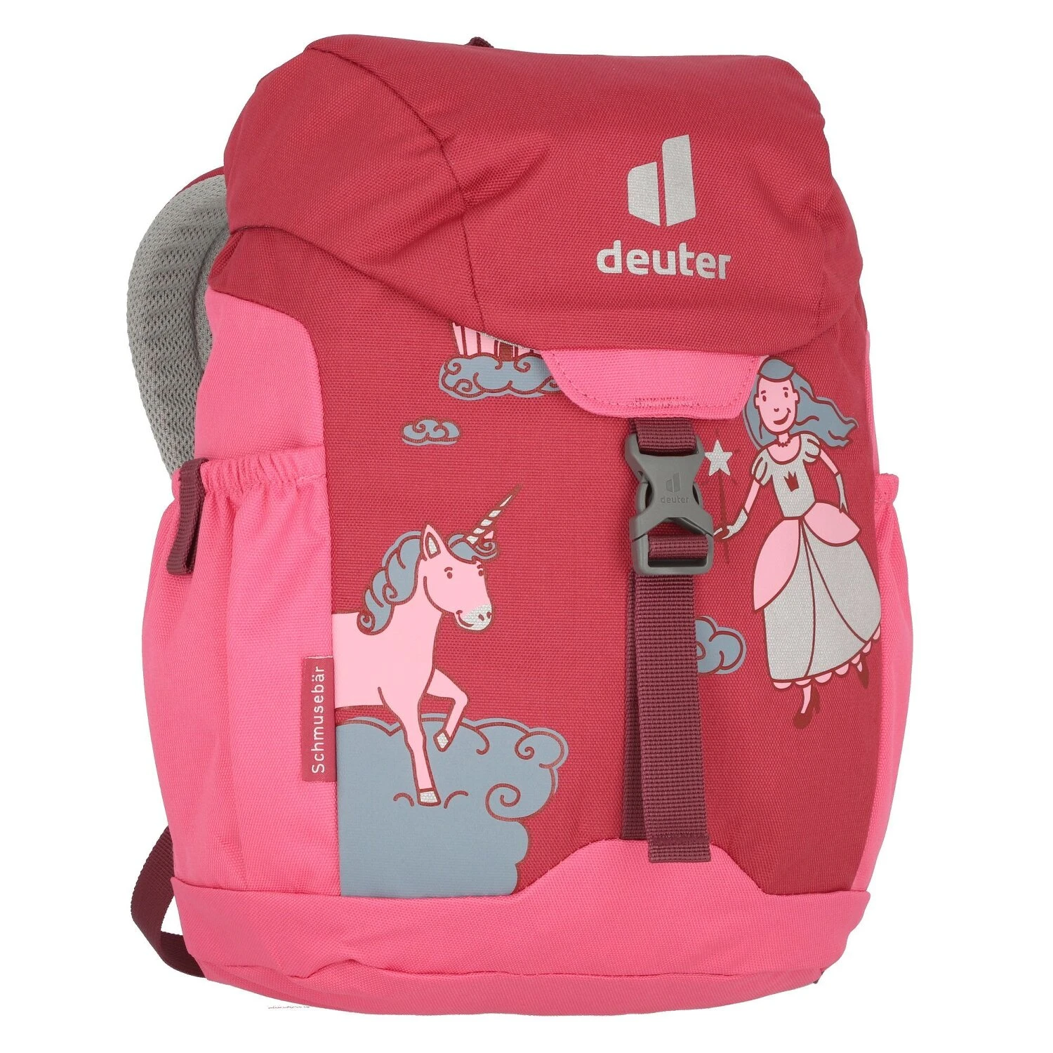 Sac à dos Deuter Schmusebär pour enfants. Il se ferme avec un cordon de serrage et une fermeture à ressort et dispose d’une poche arrière zippée et de bretelles rembourrées avec une sangle de poitrine. Les sacs à dos de cette série ont un bel imprimé coloré avec des détails réfléchissants.