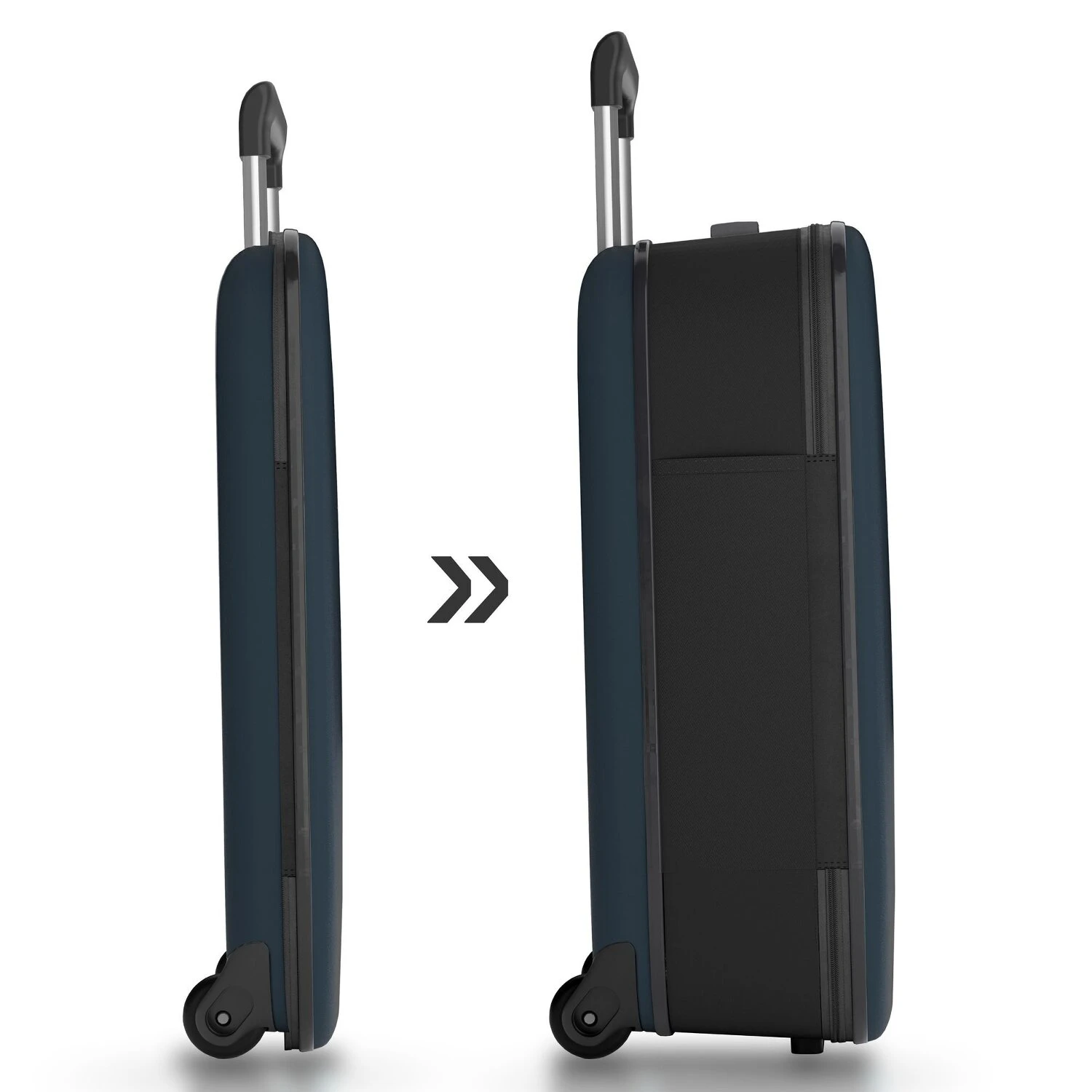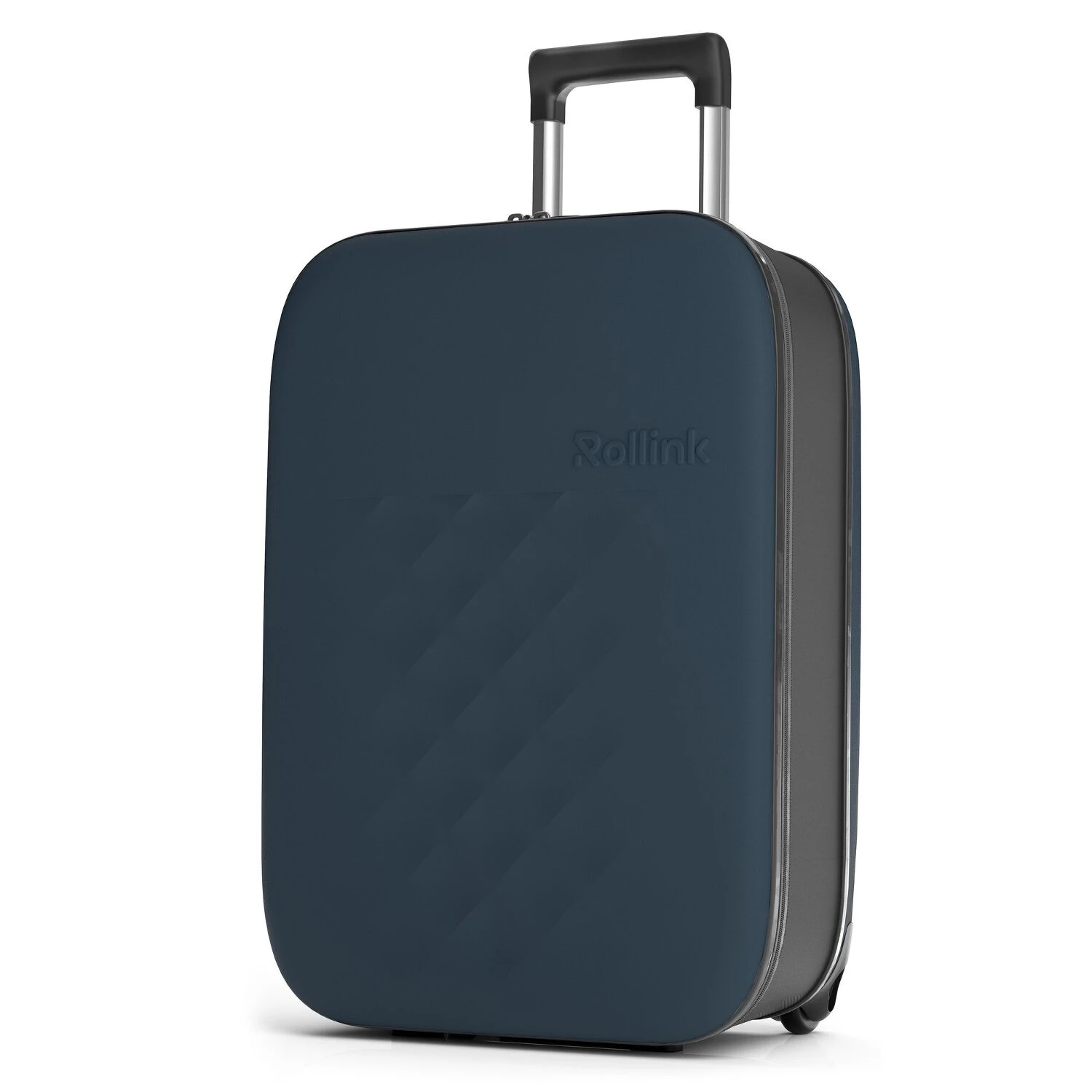 Trolley cabine 2 roues moderne et stylé de Rollink, dans l’air du temps. Grâce à la technologie de pliage, le trolley se replie sur quelques centimètres et peut donc être rangé de manière peu encombrante.